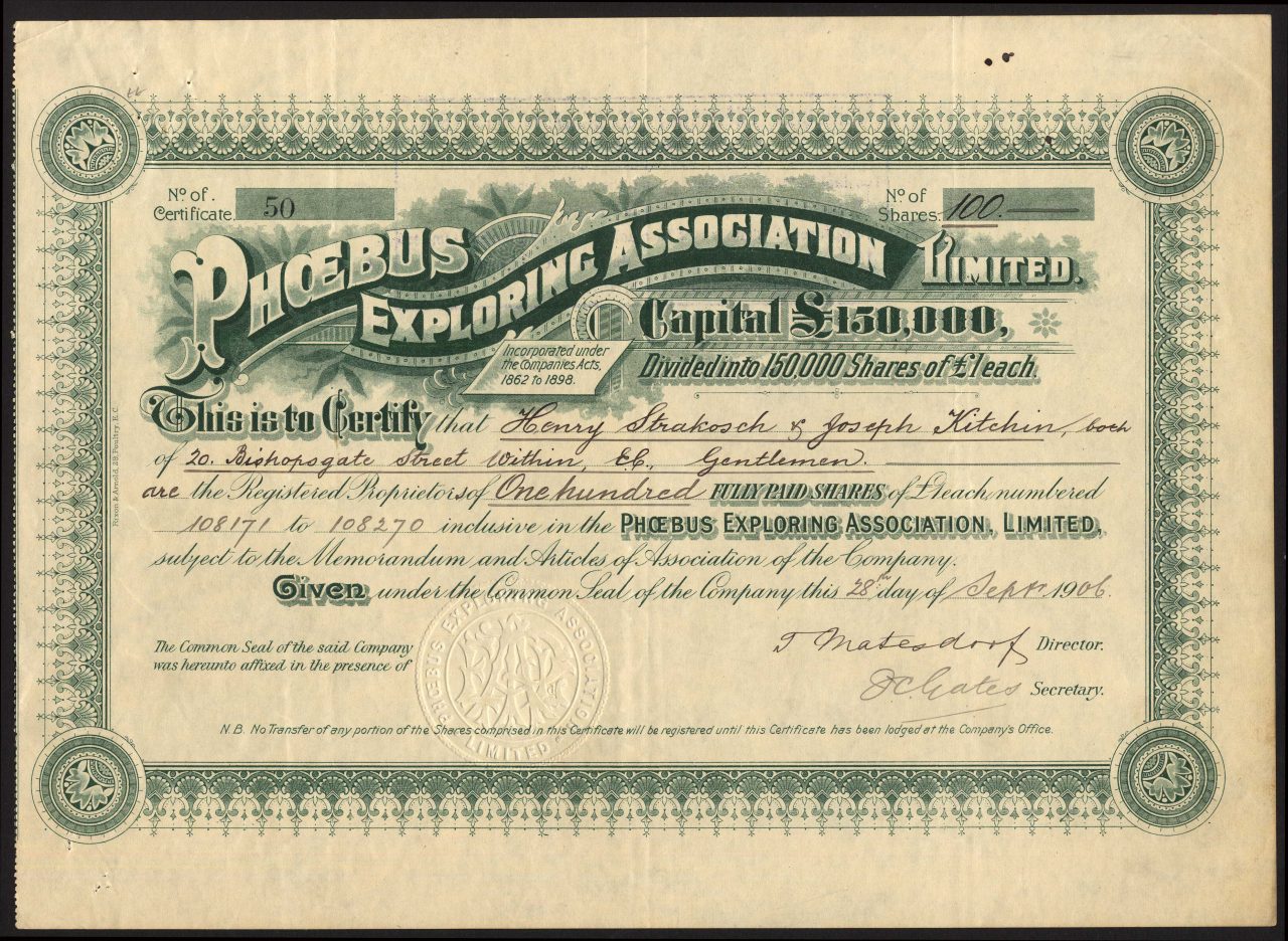 Costituita nel 1906 per acquisire Allegemeines Explorations Unternehmen GMBH, con Theodore Matesdorf come presidente e Max Steinthal come direttore. Max Steinthal era un direttore della Deutsche Bank. Matesdorf è stato coinvolto in varie iniziative minerarie con i Rothschild ma meglio conosciuto come artista. Morì nel 1909.