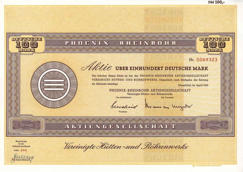 Fondata per ordine alleato nel 1951 come Hüttenwerke Ruhrort-Meiderich AG. Prima della guerra, le operazioni erano state consegnate da August Thyssen alla United Steelworks. Nel 1954/55 fusione con Rheinische Röhrenwerke AG per formare Phoenix-Rheinrohr AG, nel 1964 August Thyssen-Hütte rilevò la maggioranza delle azioni e fece un’offerta di scambio gratuito agli azionisti gratuiti.