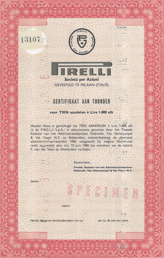 Pirelli & C. S.p.A. è una società per azioni italiana, che opera nel settore automobilistico come produttore di pneumatici per automobili, motociclette e ciclismo. La società è stata quotata presso la Borsa valori di Milano dal 1922 al 2016 e la sede è ospitata nell’area dello storico stabilimento aziendale che sorgeva nel quartiere milanese della Bicocca.