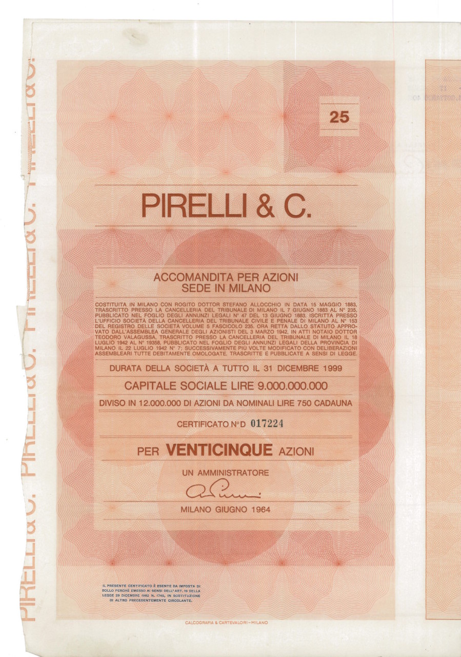 25 azioni da Lire 750