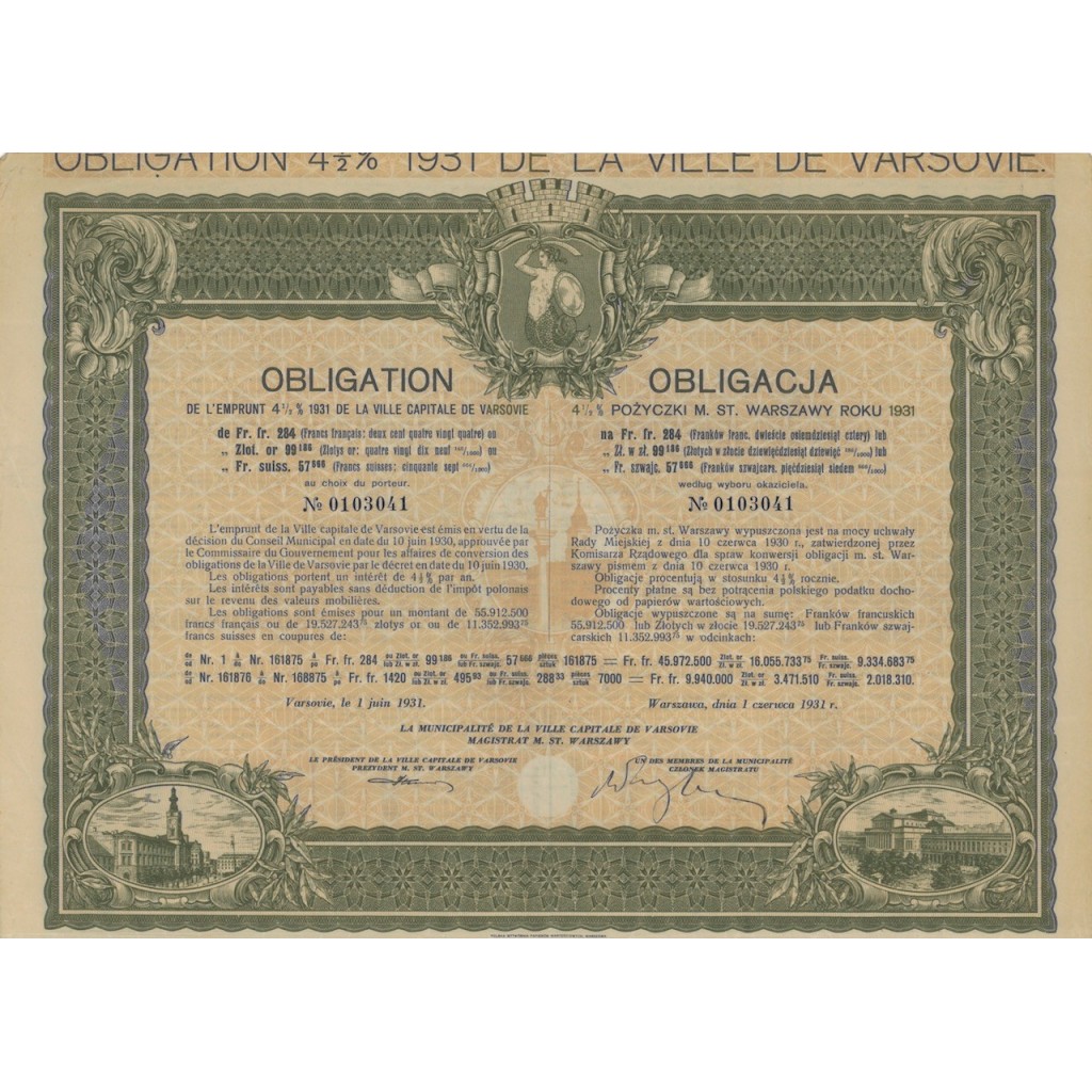 A-58959Pozyczki m. St. Warszawy roky-1 Varsavia1931BondR2 (1001-5000 pezzi)S2 (da 26 a 50 €)