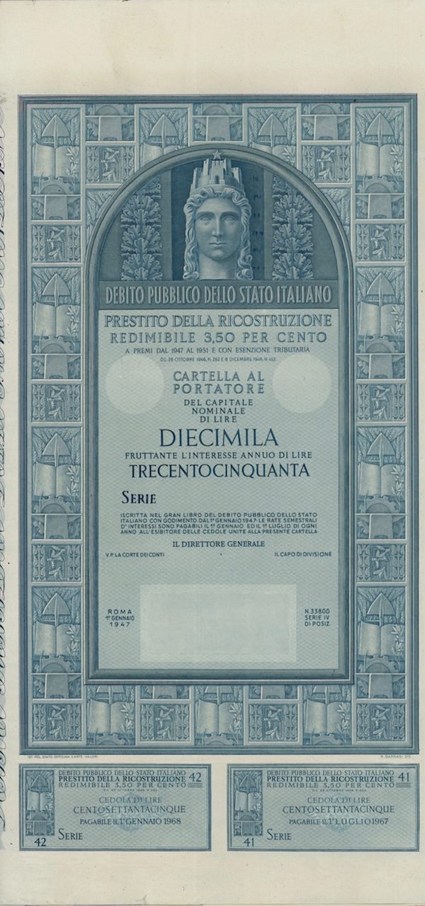 D-15423Prestito della Ricostruzione Redim. 3,50% – Cartella al Port. (1947)-4Roma194710000 lireBluR2 (1001-5000 pezzi)S1 (da 0 a 25 €)