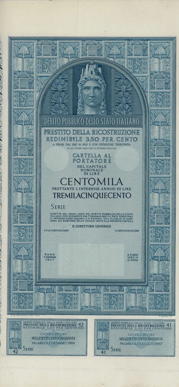 Prestito della Ricostruzione Redim. 3,50% – Cartella al Port. (1947)