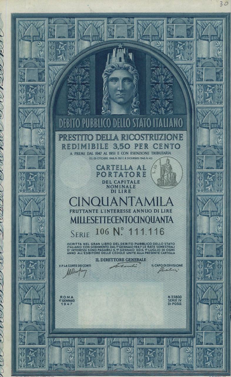 C-15423Prestito della Ricostruzione Redim. 3,50% – Cartella al Port. (1947)-3Roma19475000 lireBluR2 (1001-5000 pezzi)S1 (da 0 a 25 €)