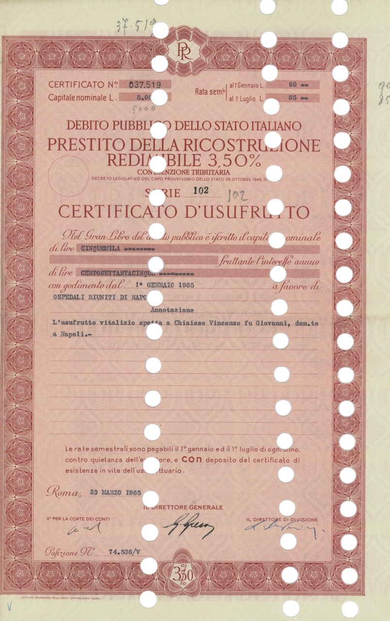 Prestito della Ricostruzione Redim. 3,50% (con Esenz. Trib.) – Cert. d’Usufrutto