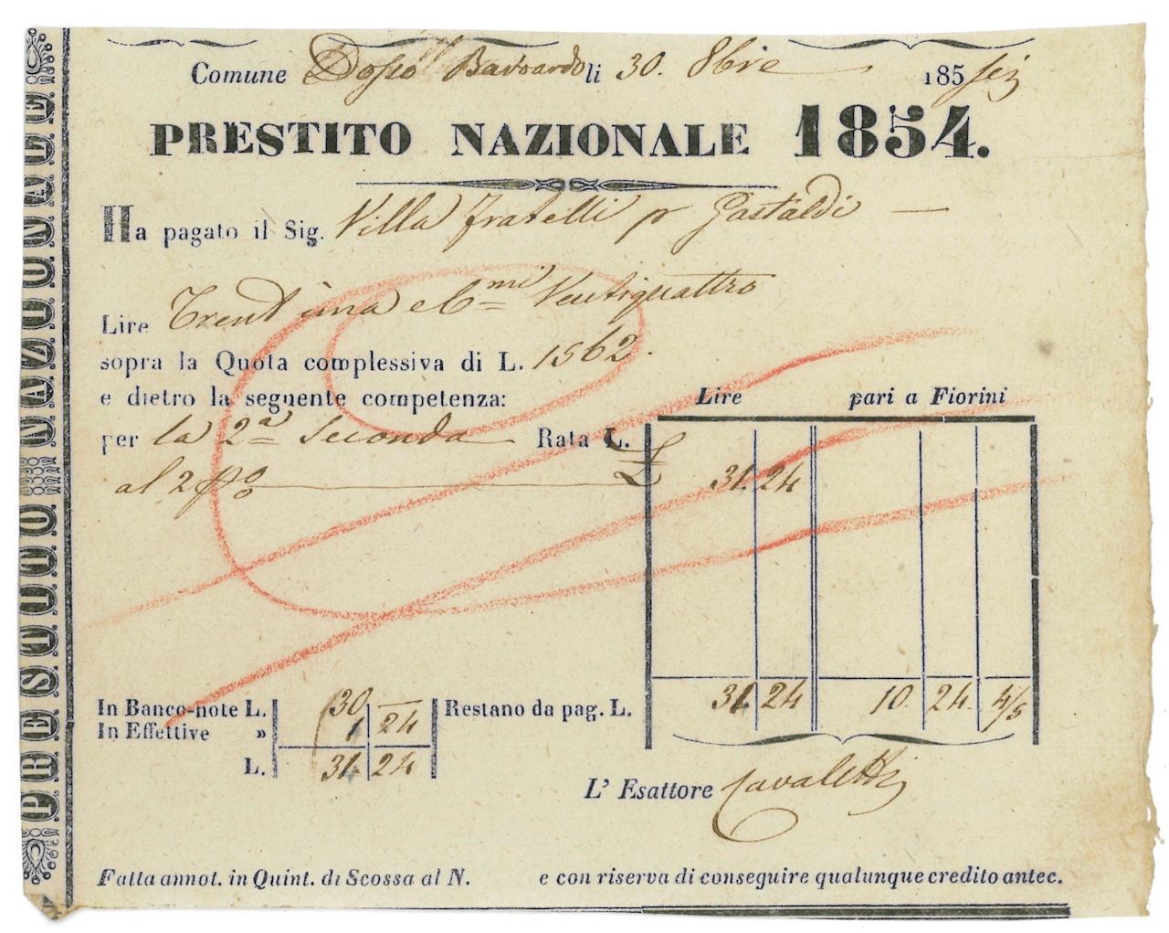 Prestito Nazionale 1854 – Regno di Sardegna