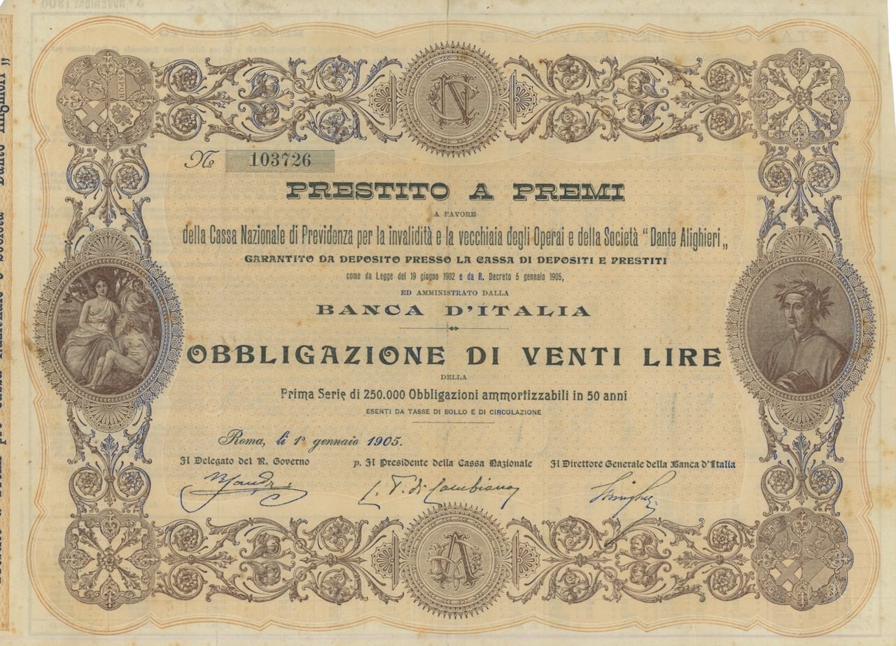 Prestito a Premi a Fav. della Cassa Naz. di Prev. e Soc. Dante Alighieri