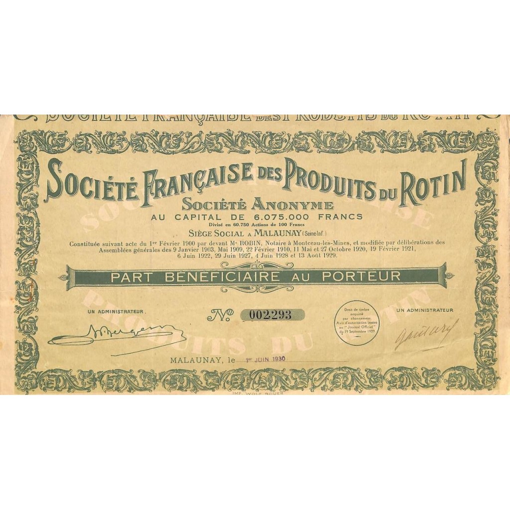 A-51838Produits du rotin soc. Francaise des-1 Malaunay1930Parte beneficiaria al portatore.R1 (Più di 5000 pezzi)S1 (da 0 a 25 €)