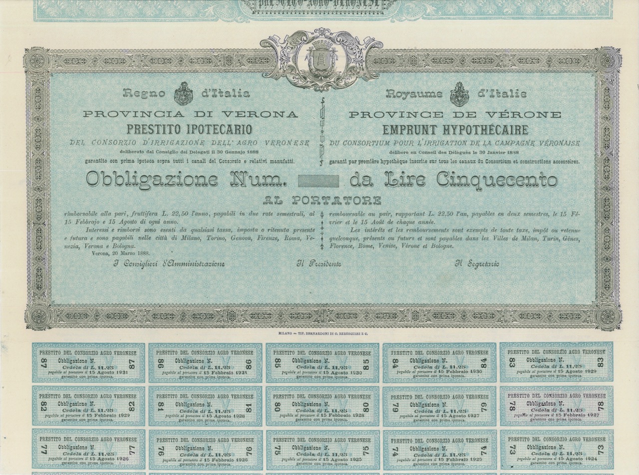 Provincia di Verona Prestito Ipotecario 1890