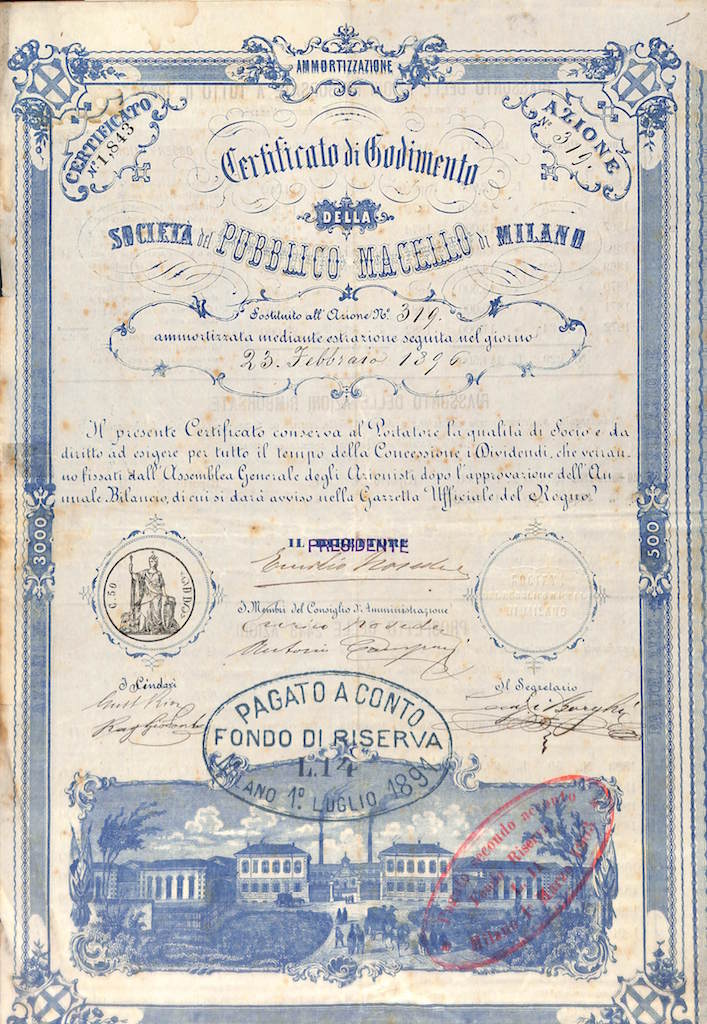 Il documento certifica che la società è stata istituita ufficialmente nel 1882, con sede a Milano. La costruzione del macello pubblico ha segnato un punto di svolta nella storia dell’industria alimentare milanese, introducendo standard più elevati di controllo sanitario e qualità della carne.
