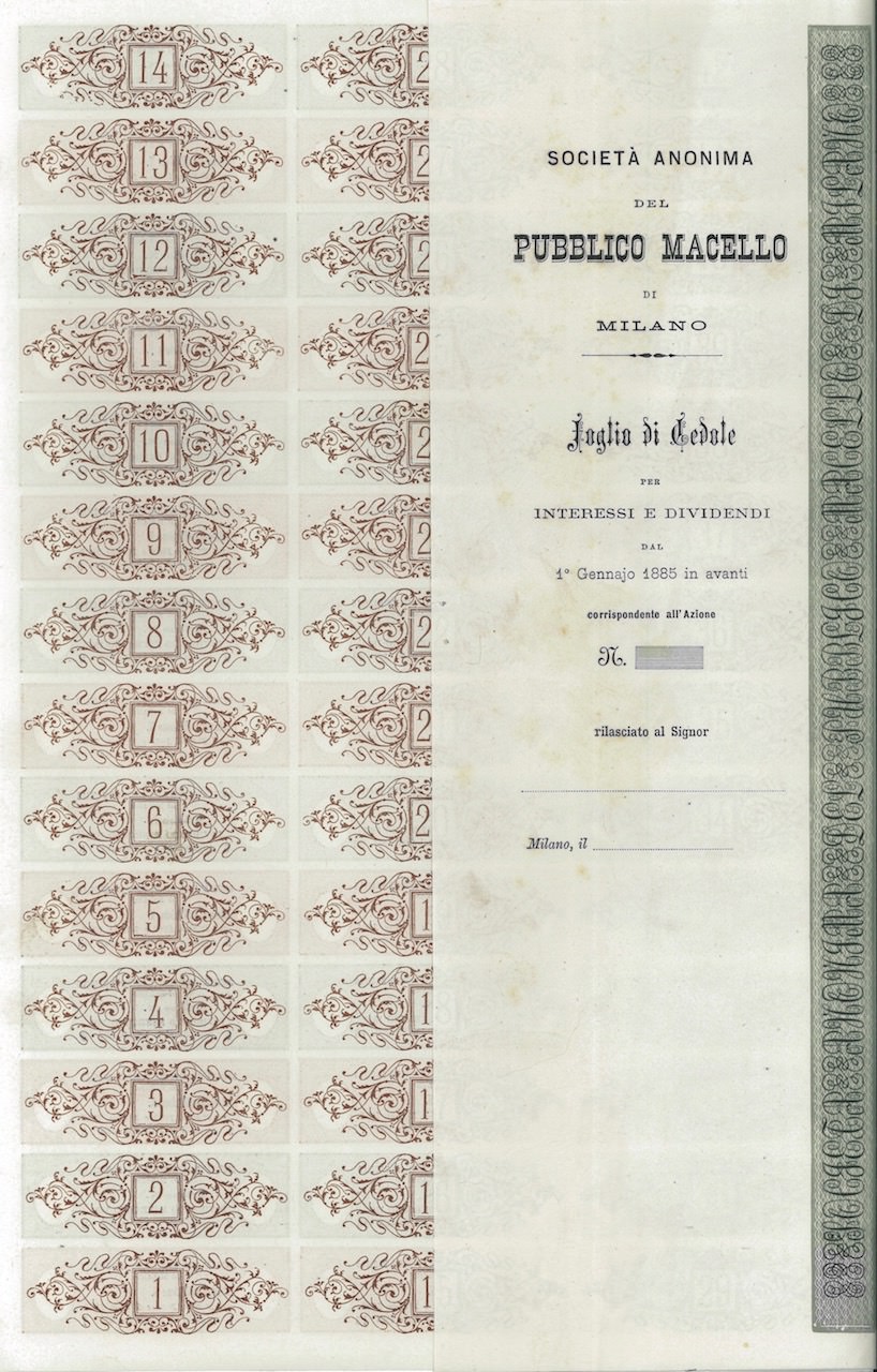 Il documento certifica che la società è stata istituita ufficialmente nel 1882, con sede a Milano. La costruzione del macello pubblico ha segnato un punto di svolta nella storia dell’industria alimentare milanese, introducendo standard più elevati di controllo sanitario e qualità della carne.