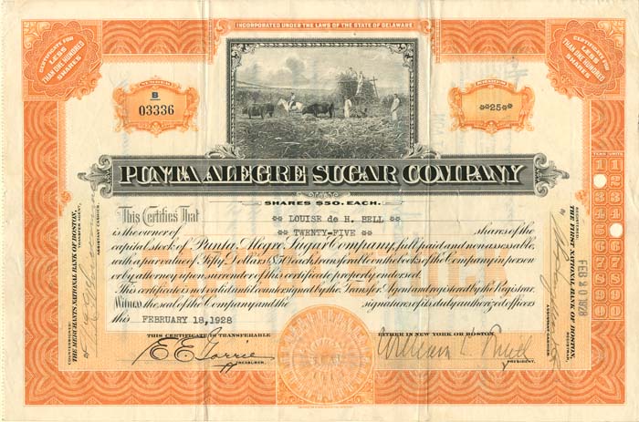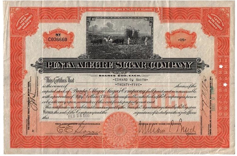 Poco dopo l’incorporazione, gli azionisti della Trinidad Sugar Co. avrebbero accettato di entrare a far parte della Punta Alegre Sugar Co., così come i proprietari della Florida centrale. Punta Alegre Sugar Co. possedeva anche il nuovo zuccherificio Punta Alegre che era ancora in fase di costruzione e impianto al momento della sua costituzione. In qualità di holding, nel tempo Punta Alegre Sugar Co. diventerebbe proprietaria al 100% delle azioni in circolazione di 4 filiali che possiedono 12 fabbriche di zucchero che producono un totale di 516.587 milioni di tonnellate di zucchero nella stagione 1924-251: