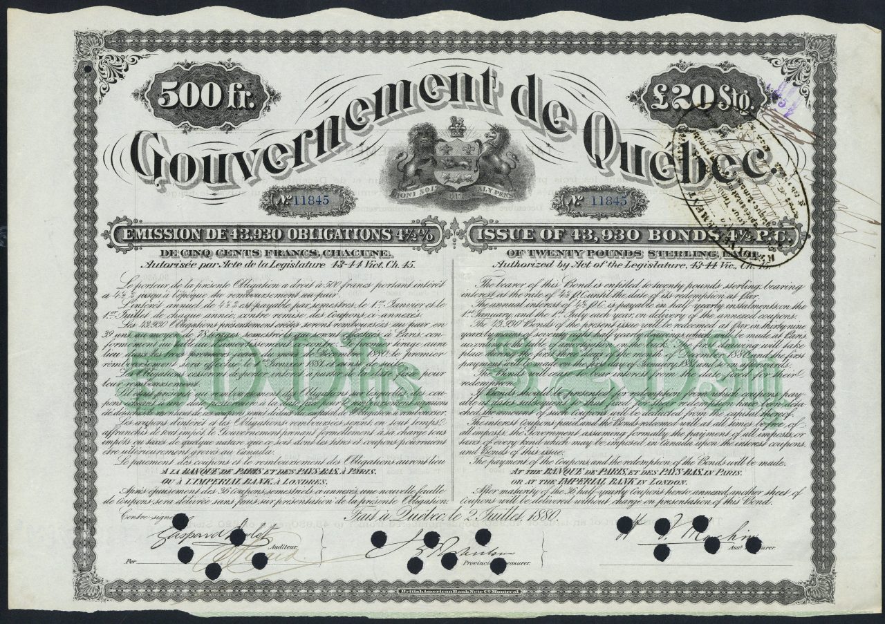 Quebec, 1880 4½% Loan