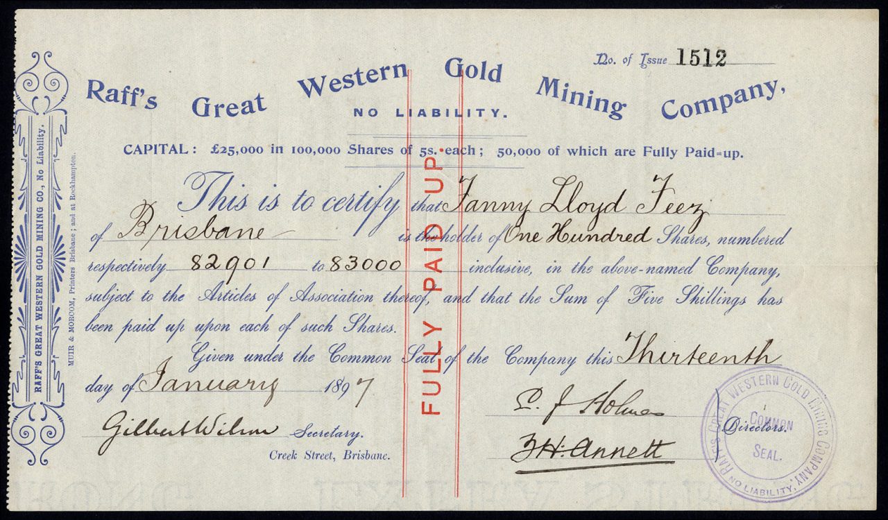 Registrato a Brisbane. Miniere nel Queensland.