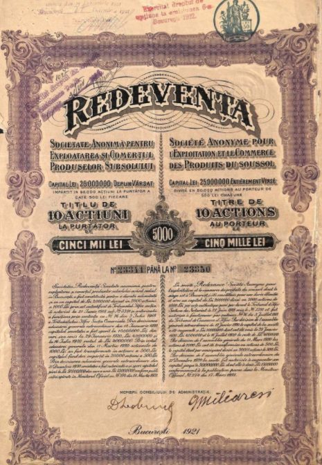 Titolo di 10 azioni del valore di 5000 lei.