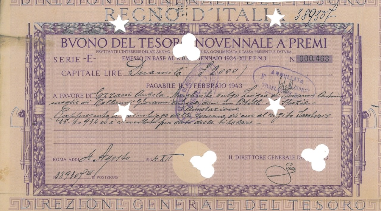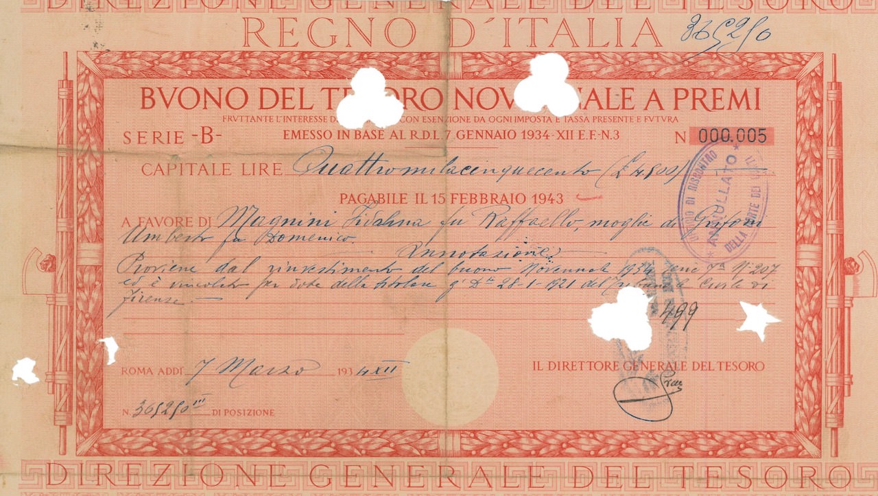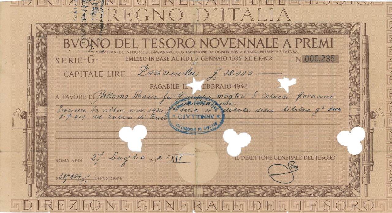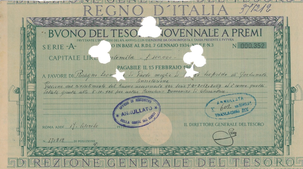 Regno d’Italia – Buono del Tesoro Novennale a Premi (7/01/1934)