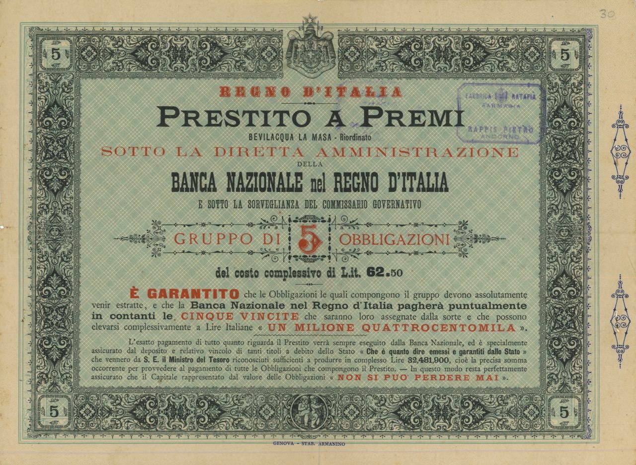 Regno d’Italia – Prestito a Premi Bevilacqua La Masa