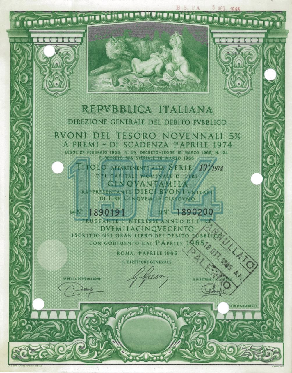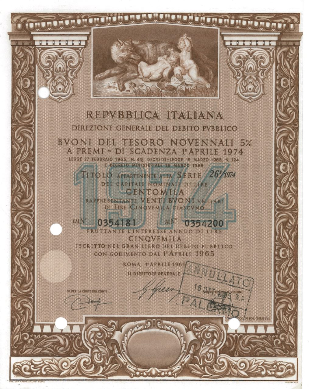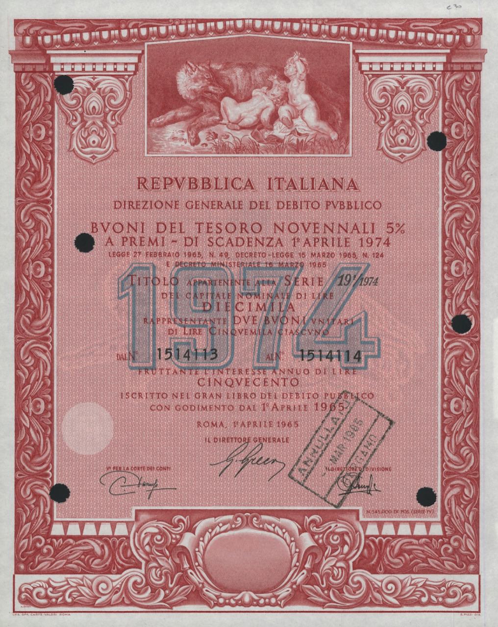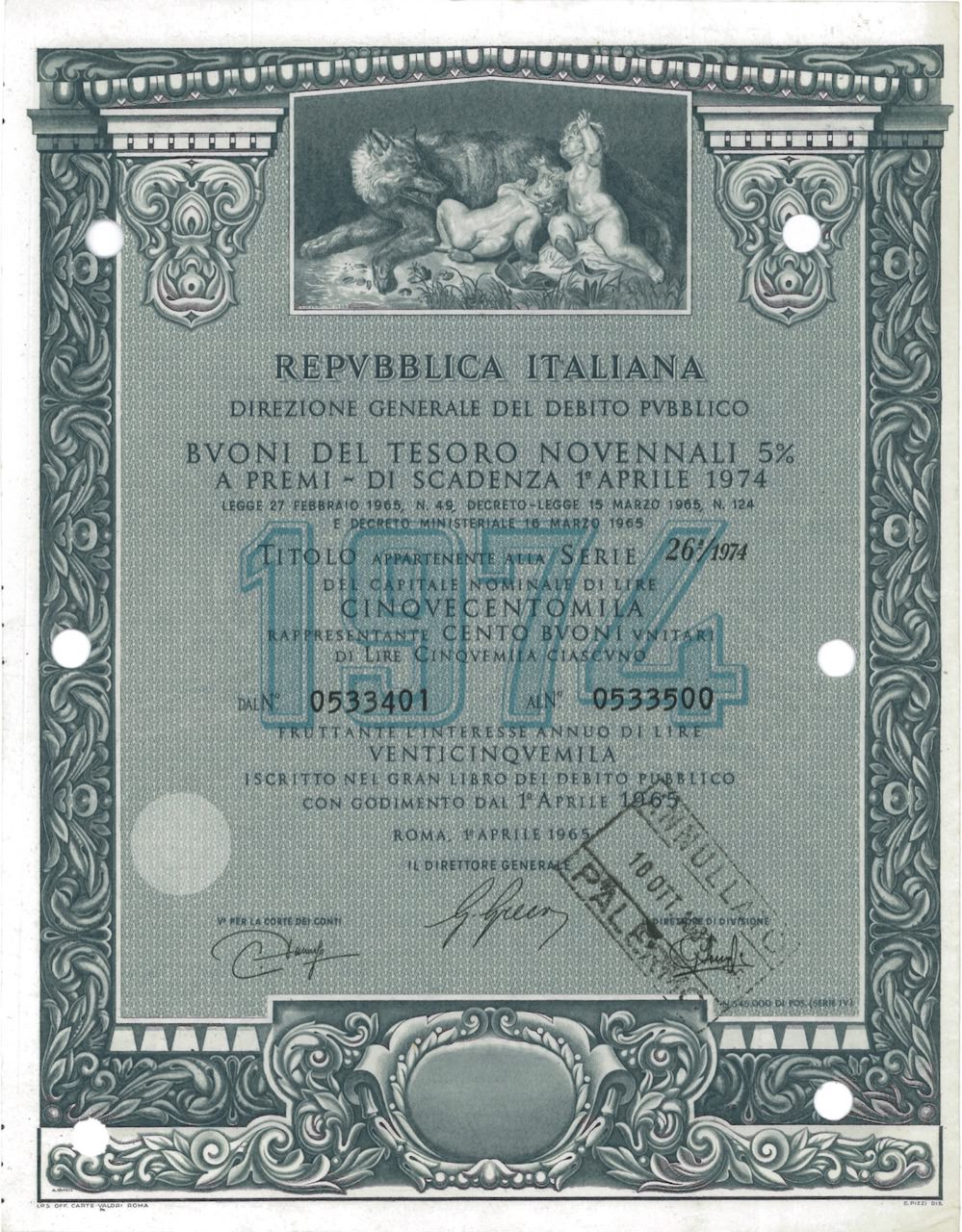 Repubbl. Ital. – BTP Nov. 5% a Premi – di Scad. 1° Aprile 1974 al Port.