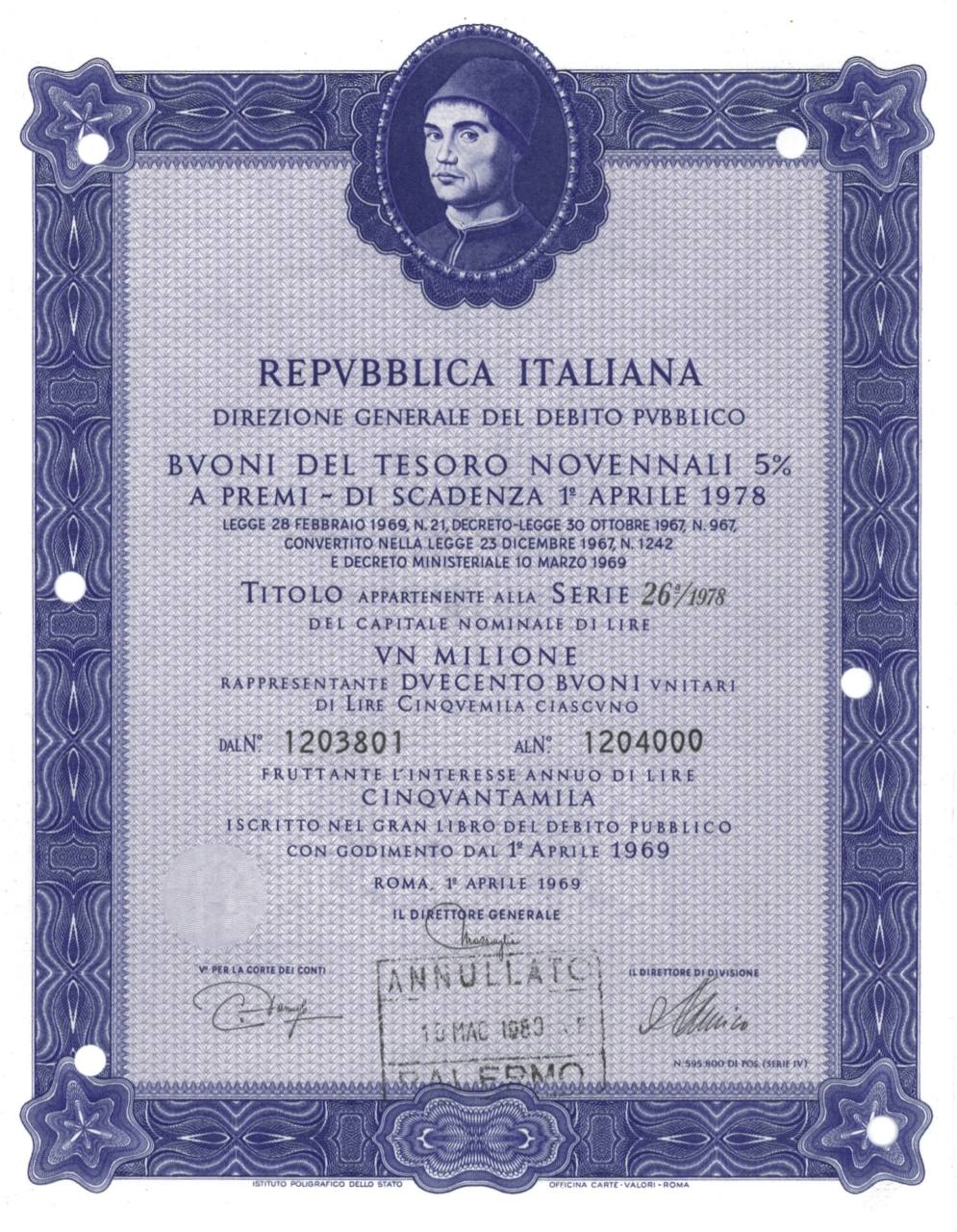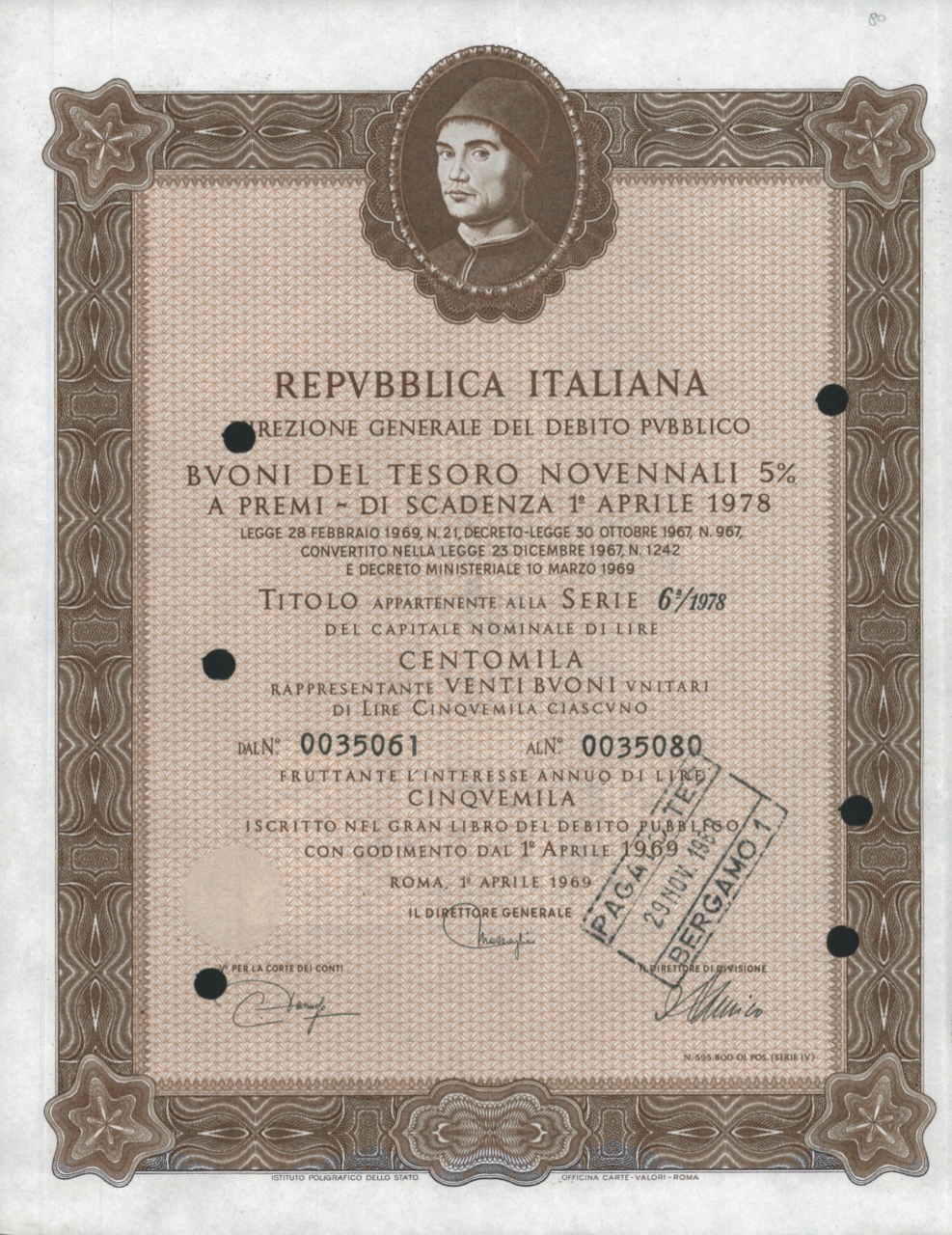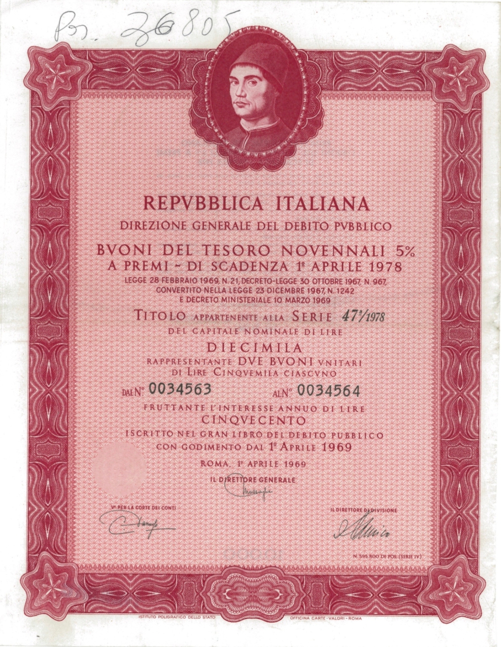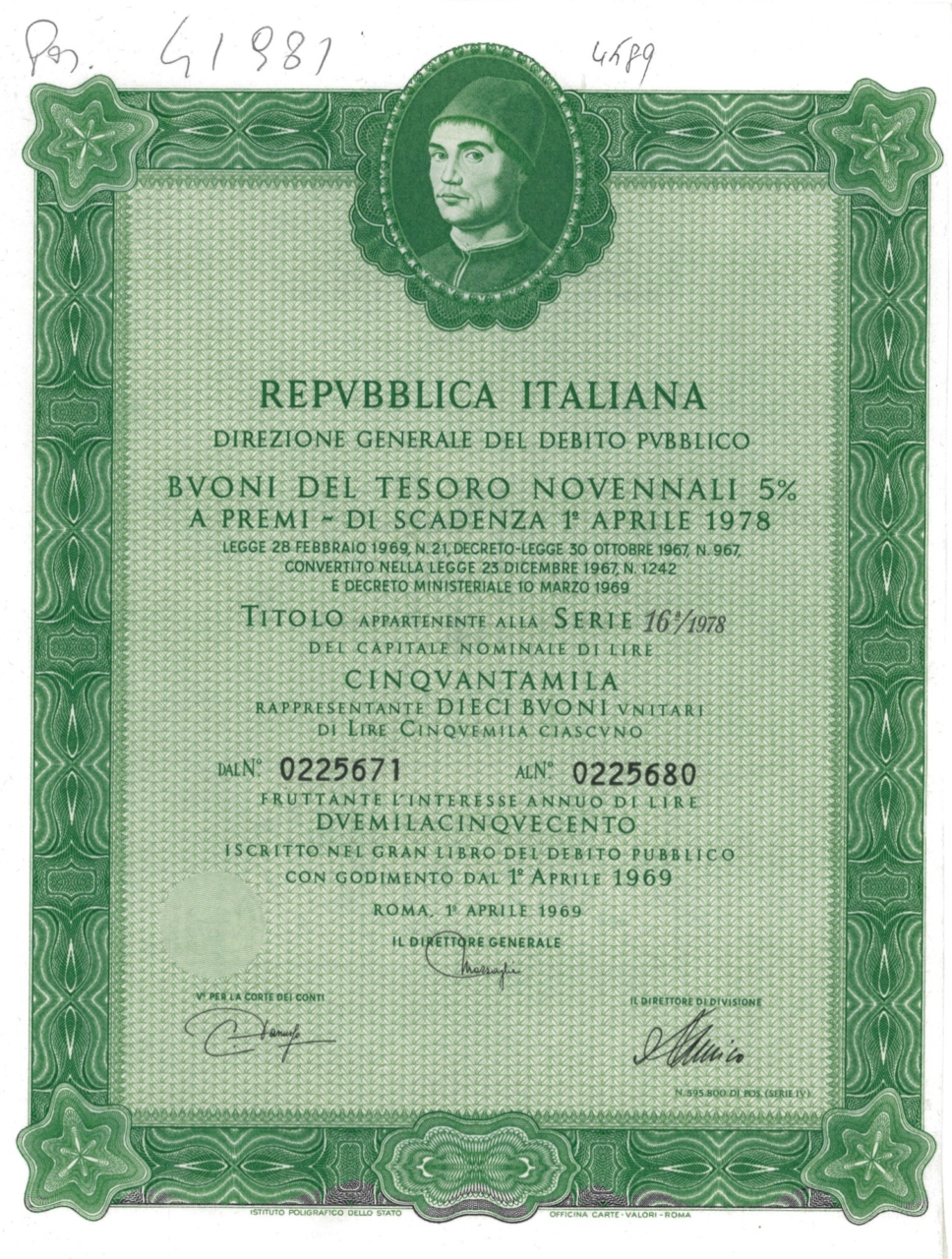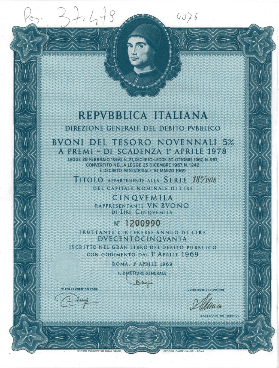 Repubbl. Ital. – BTP Nov. 5% a Premi – di Scad. 1° Aprile 1978 al Port.