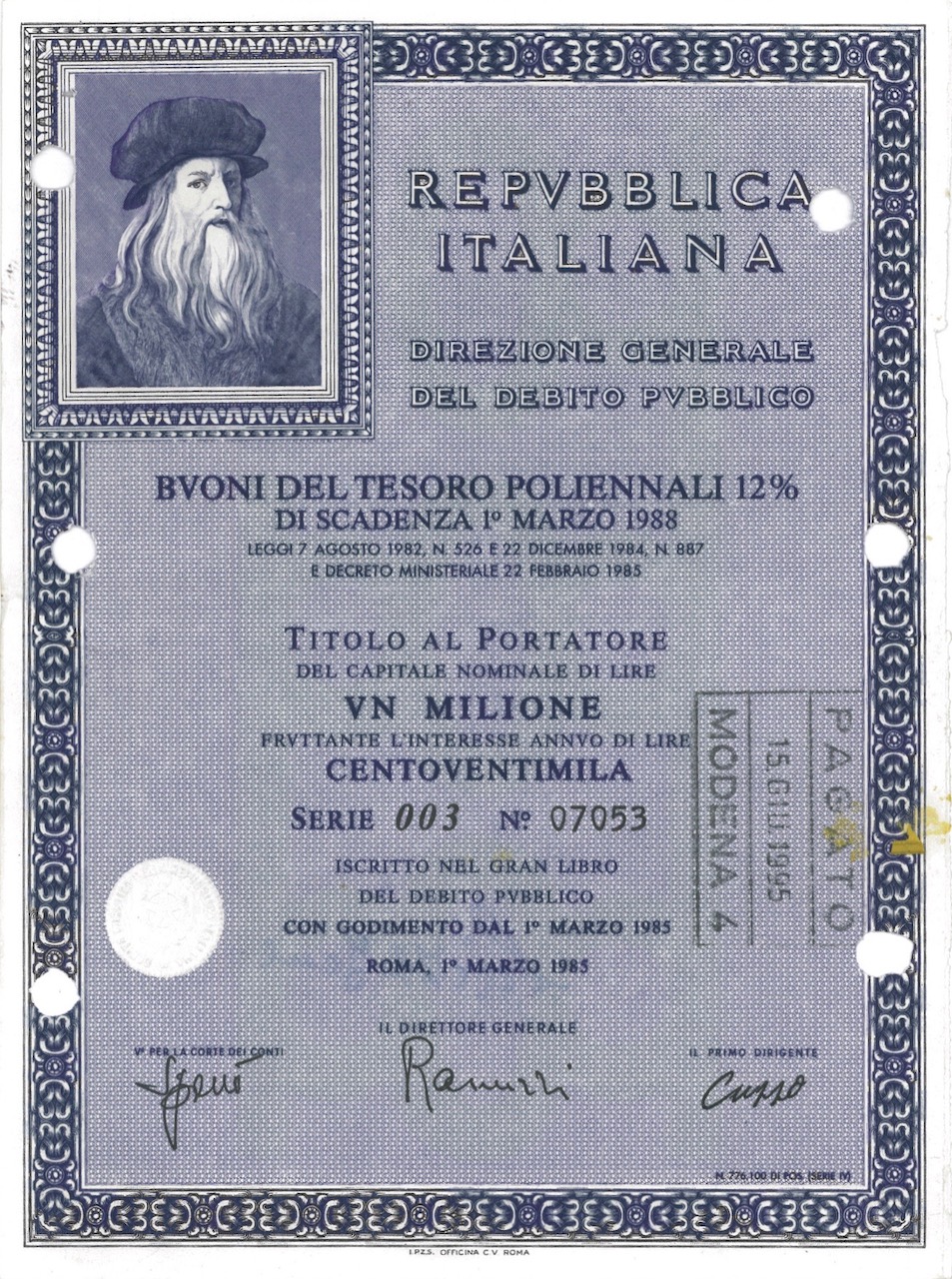 Nel 1971 con la ne degli accordi di Bretton Woods, l’emissione della moneta e del debito si trasformarono profondamente spianando la strada all’era attuale che ha portato inevitabilmente alla dematerializzazione facendo sparire dalla circolazione quei meravigliosi documenti cartacei che per anni furono il vanto dei loro emittenti, ma che tristemente furono mandati al macero rendendoli oggi, per fortuna nostra, rari e preziosi oggetti da collezione e da investimento.