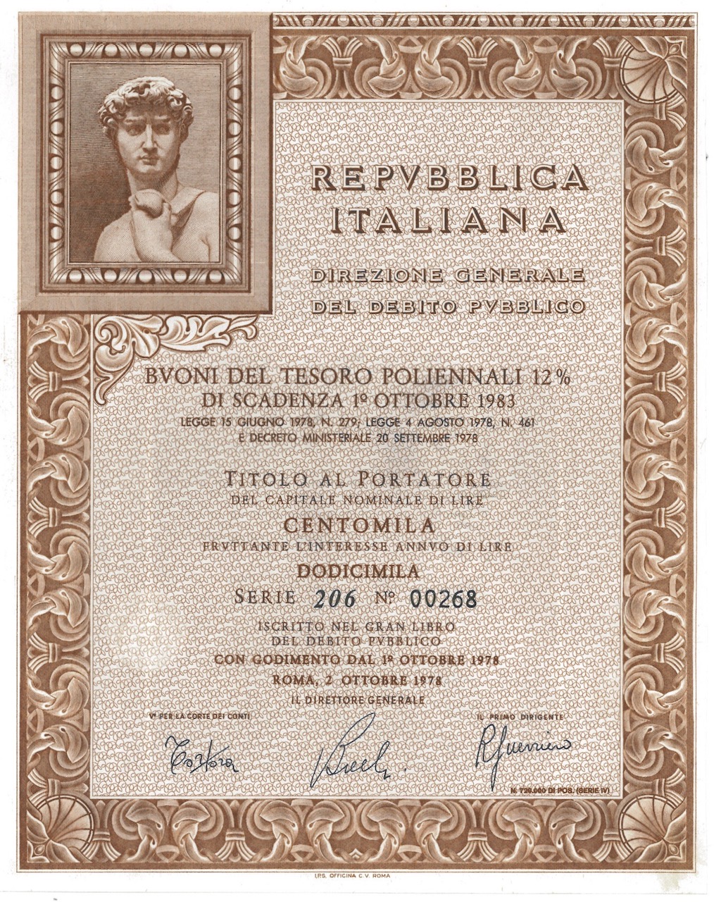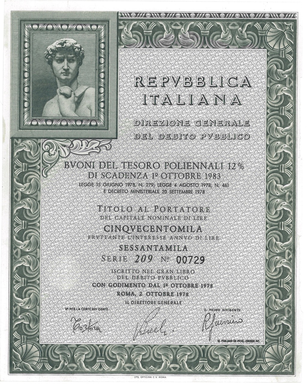 B-16373Repubbl. Ital. – BTP Poliennali 12% – di Scad. 1° Ottobre 1983 al Port.-2Roma1978500000 lireGrigioR4 (251-500 pezzi)S4 (da 101 a 250 €)