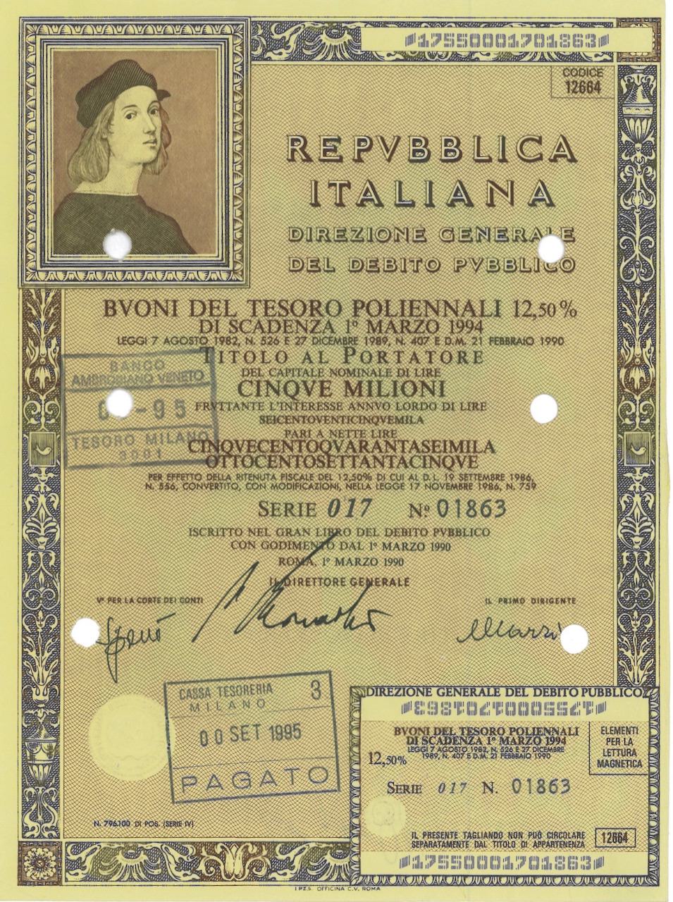 Repubbl. Ital. – BTP Poliennali 12,50% – di Scad. 1° Marzo 1994 al Port.