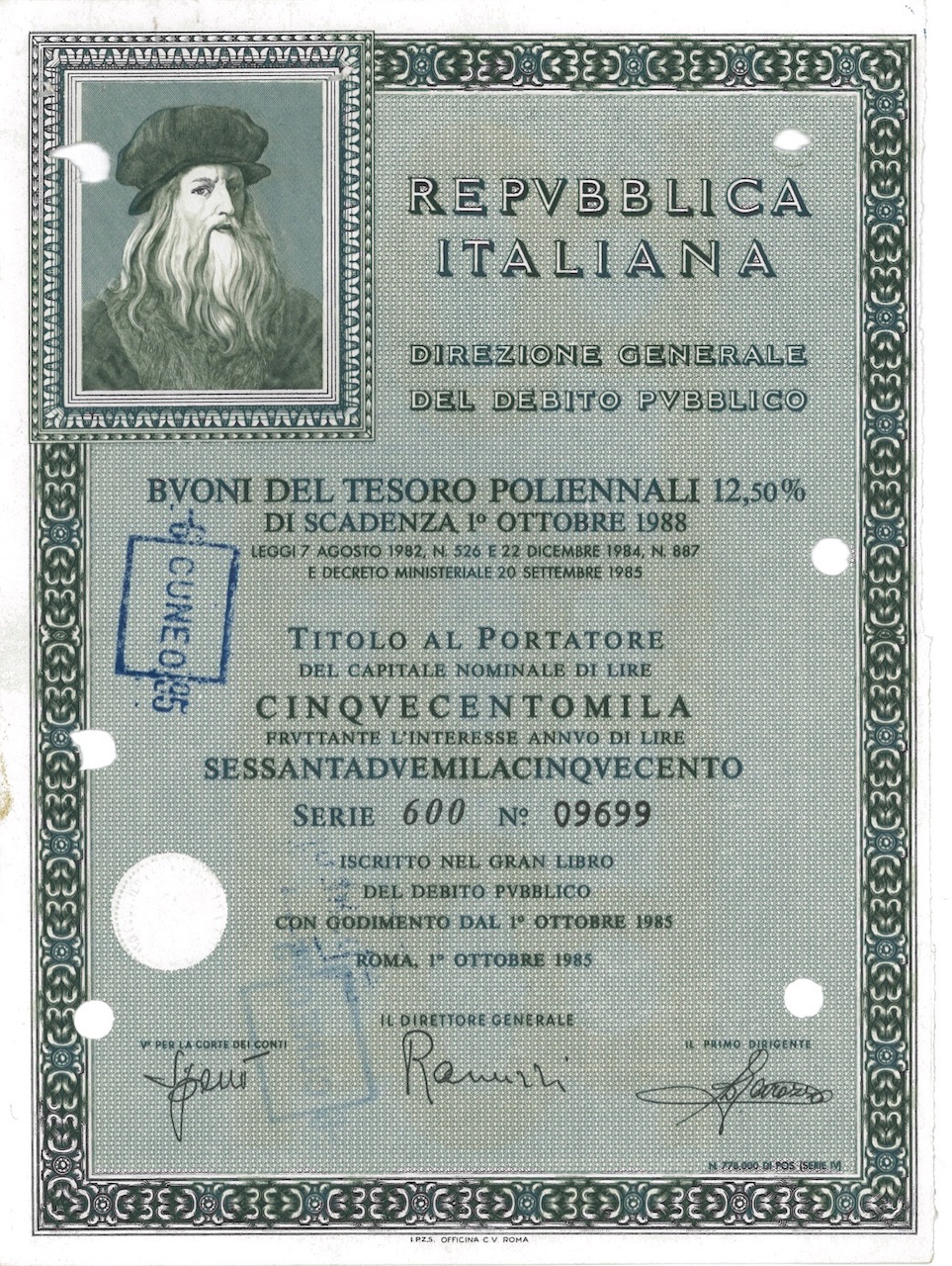 Repubbl. Ital. – BTP Poliennali 12,50% – di Scad. 1° Ottobre 1988 al Port.
