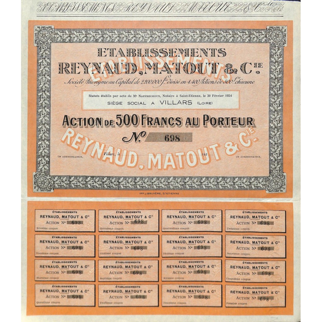 A-49942Reynaud, matout et c.Ie etablissements-1 Villars1924500 FranchiR1 (Più di 5000 pezzi)S1 (da 0 a 25 €)
