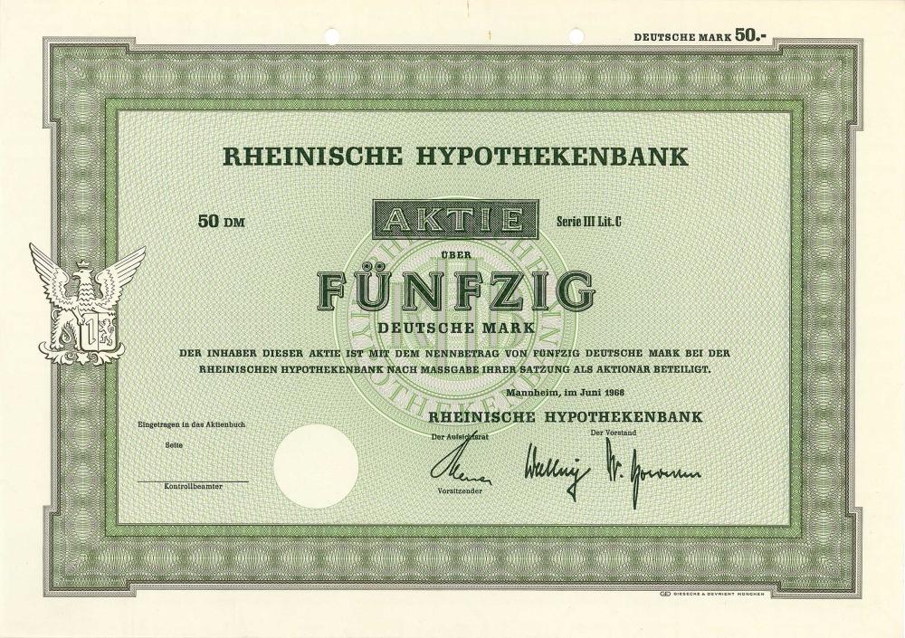 B-65377Rheinische Hypothekenbank-2Mannheim19681 azione da 50 MarchiR3 (501-1000 pezzi)S3 (da 51 a 100 €)
