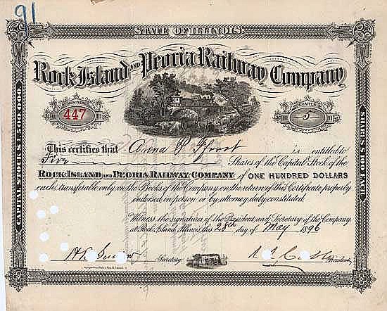 Fondata nel 1869 come RR dalla fusione di due predecessori, preclusa nel 1877 e riorganizzata come Ry. Itinerario Rock Island-Peoria, Illinois (91 miglia). Più tardi venne affittata a Chicago, Rock Island e Pacific RR.