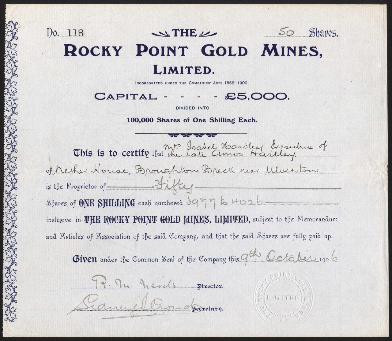 Registrato il 17 settembre 1906 come ricostruzione di Homeward Bound Mine Limited. Dissolto <1916. Azienda numero 90147. Proprietà a Beechworth, Victoria.