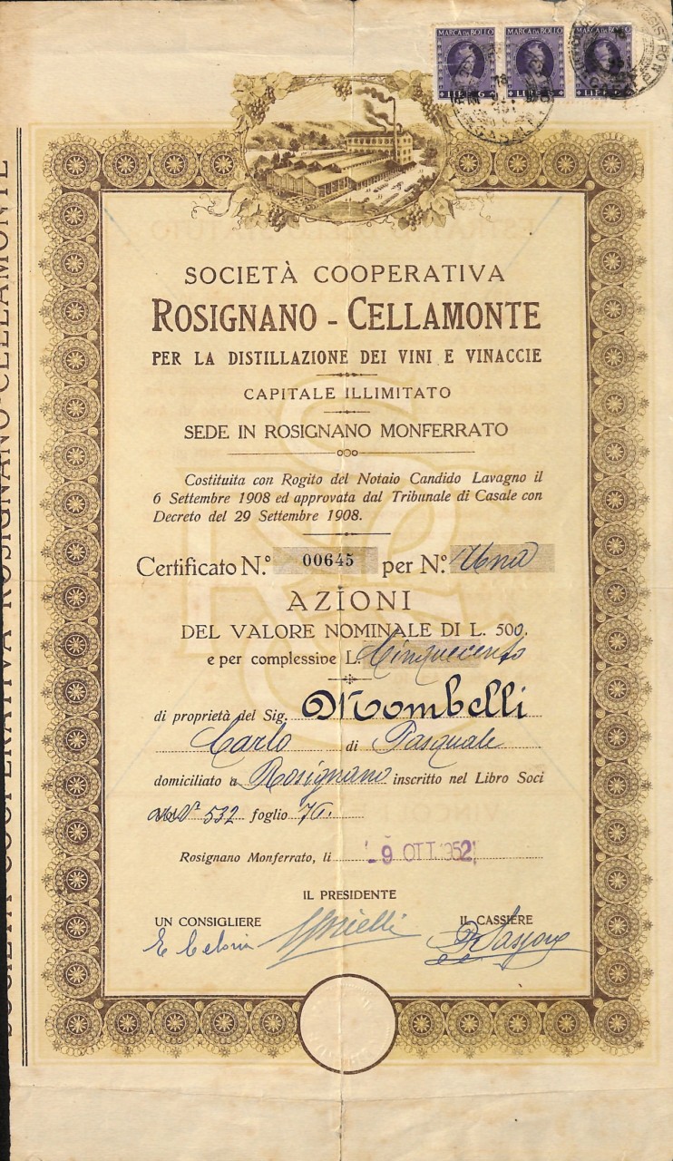 A-7041Cooperativa Rosignano – Cellamonte Soc.-1N.D.Alessandria1952VariabileR3 (501-1000 pezzi)S3 (da 51 a 100 €)