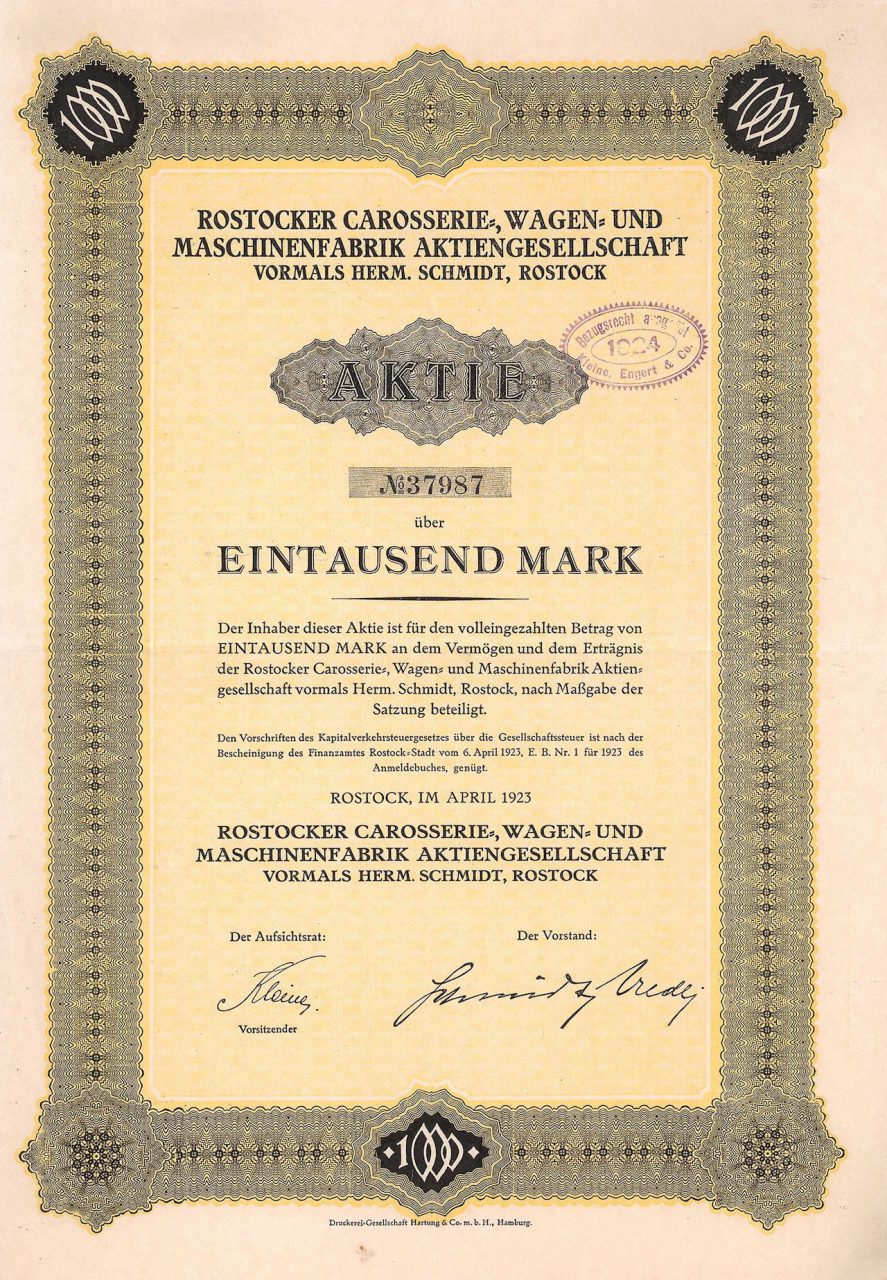 Rostocker Carosserie, Wagen und Maschinenfabrik AG vorm. Herm. Schmidt, Rostock