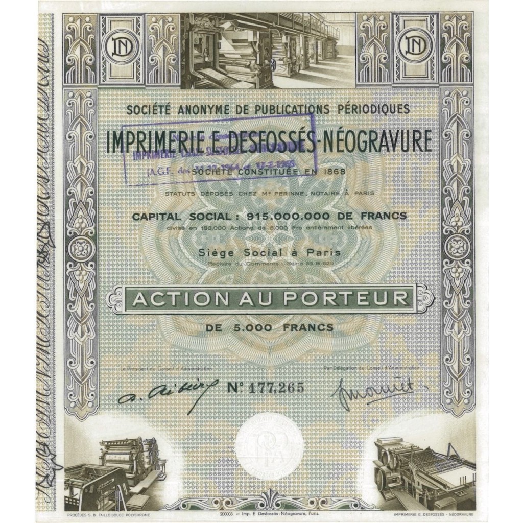 A-53073S.A. De pub. Periodiques imp. E desfosses neogravaure-1 Parigi18682500 FranchiR2 (1001-5000 pezzi)S3 (da 51 a 100 €)