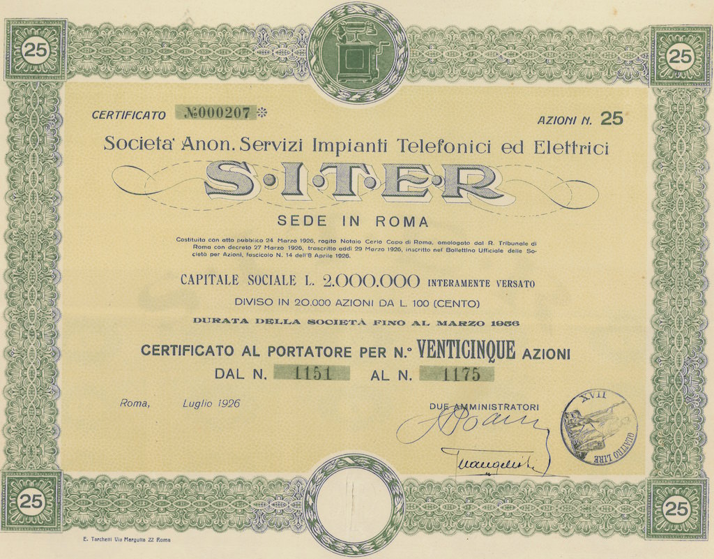 CERTIFICATO AL PORTATORE PER 25 AZIONI
