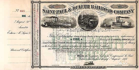Fondata nel 1863 come Lake Superior e Mississippi RR. La linea principale di 155 miglia da St. Paul sul corso superiore del Mississippi a Duluth sulla sponda occidentale del Lago Superiore (praticamente parallela all’odierna Interstate 35) fu completata nel 1870; era la principale linea di alimentazione orientale della famosa Northern Pacific Railroad. Nel crollo della borsa del 1873, causato dal crollo di Jay Cooke e della sua Northern Pacific, dichiarata fallita per mancato servizio delle obbligazioni, la ferrovia fu riorganizzata nel 1877 come Saint Paul & Duluth RR. Lo stretto collegamento con il Pacifico settentrionale non fu privo di conseguenze: nel 1900 questa ferrovia fu incorporata nell’immenso sistema della NP.