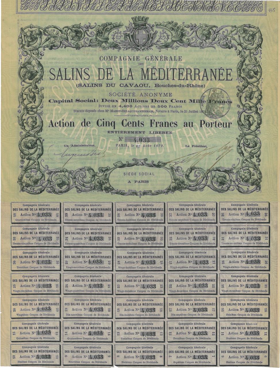 A-28822Salins de la Mediterranée-1N.D.Parigi18791 azioneR3 (501-1000 pezzi)S3 (da 51 a 100 €)