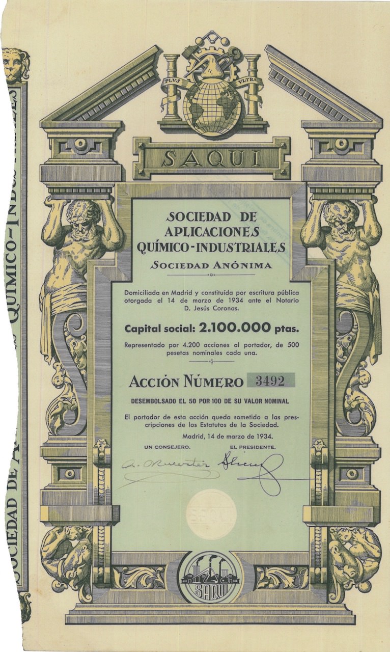 A-28108Saqui – Soc. de Aplicaciones Quimico-Industriales-1N.D.Madrid19341 azioneR4 (251-500 pezzi)S4 (da 101 a 250 €)