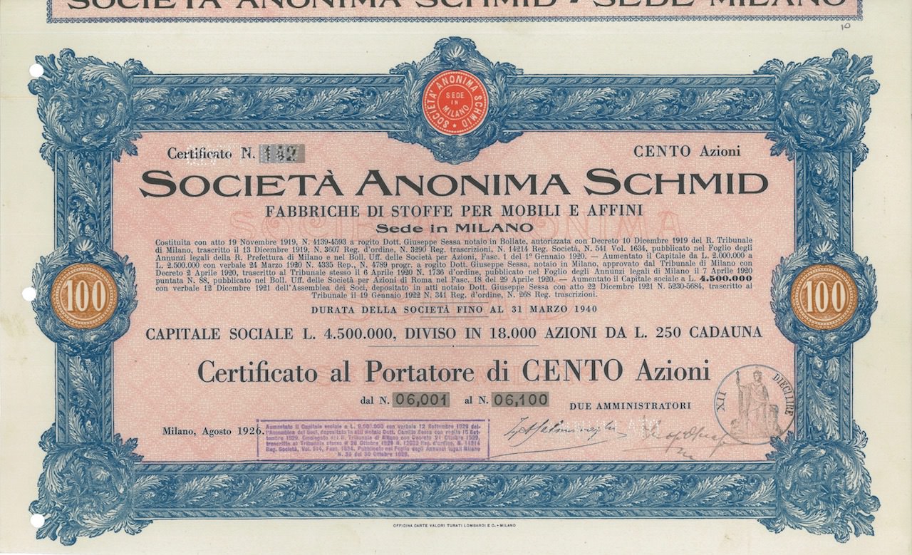 Schmid Soc. An. Fabbriche di Stoffe per Mobili ed affini