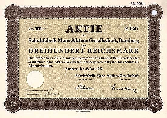 La casa madre fu fondata nel 1872 come fabbrica sotto la società S. Müller, Bamberga. Nel 1887 Heinrich e Franz Josef Manz acquisirono la società. Nel 1894 fondazione della fabbrica di scarpe meccaniche Manz & Co. Nel 1898 fusione della fabbrica di alberi e della fabbrica di scarpe meccaniche Manz & Co. nella fabbrica di scarpe e alberi meccanici Manz AG. Nel 1925 ribattezzato come sopra. La maggior parte delle azioni era di proprietà della famiglia, ma negli anni '60 la Deutsche Bank apparve con una partecipazione nella scatola. Il marchio di scarpe Mercedes è stato acquisito nel 1974 e Fortuna Shoes a Höchstadt / Aisch nel 1989. Con circa 500 dipendenti ora venivano fabbricati oltre 400.000 paia di scarpe all'anno. Trasformata in una GmbH nel 1999,... Altro