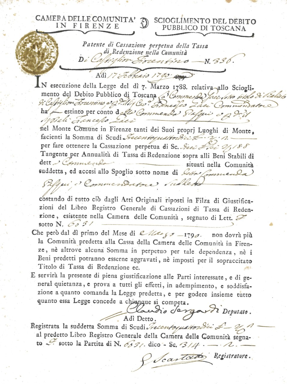 Documento di Scioglimento del Debito Pubblico di Toscana
