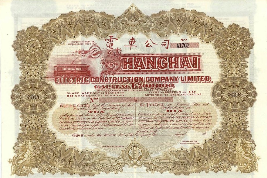 L’azienda è stata fondata nel dicembre 1905 e gestiva il tram elettrico a Shanghai, nel 1917 erano in funzione 25 miglia. Nel 1934 il controllo e la gestione si trasferirono da Londra a Shanghai. La rete di rotte era ora di oltre 32 miglia e c’erano 18 tram e 17 filobus.