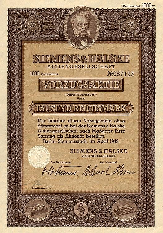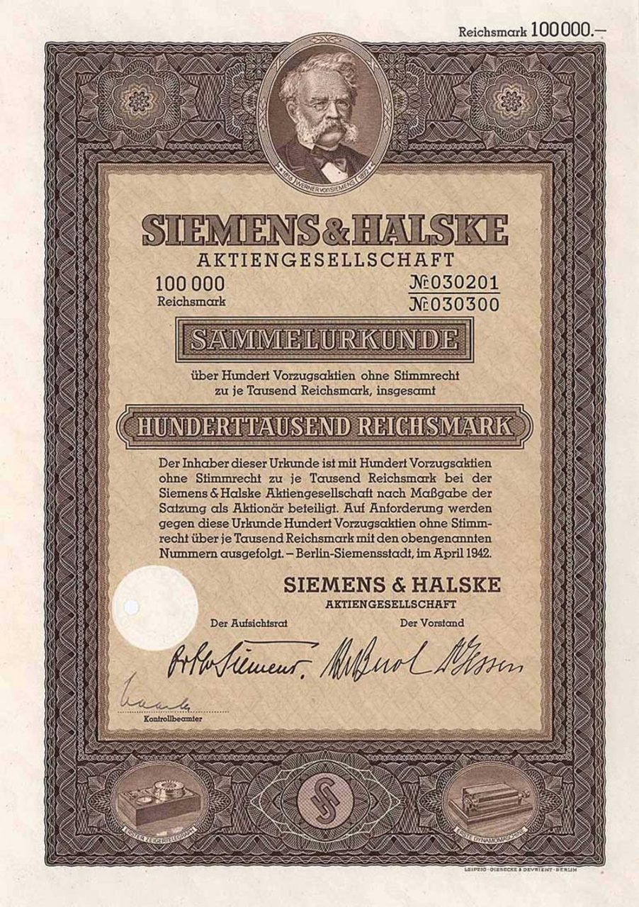 E-31497Siemens & Halske AG-5Berlino1942100 azioni da 1.000 MarchiR5 (101-250 pezzi)S5 (da 251 a 500 €)