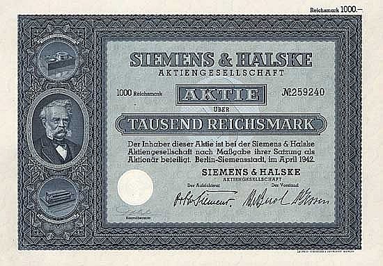 C-31497Siemens & Halske AG-3Berlino19421 azione da 1.000 MarchiR4 (251-500 pezzi)S4 (da 101 a 250 €)