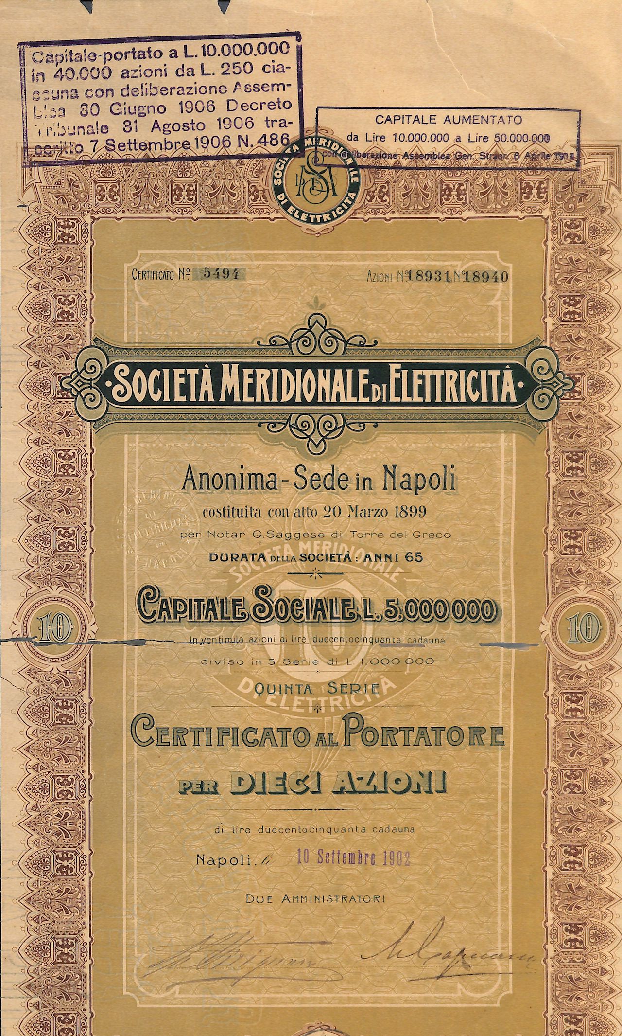 Nacque il 20 marzo 1899 ad opera della Compagnia Napoletana di Illuminazione e Gas, della Comit e della Società Franco Suisse di Ginevra. Nel 1937 fu tra le aziende che passarono dalle banche al neocostituito IRI e fu poi inquadrata nella caposettore Finelettrica (1962).