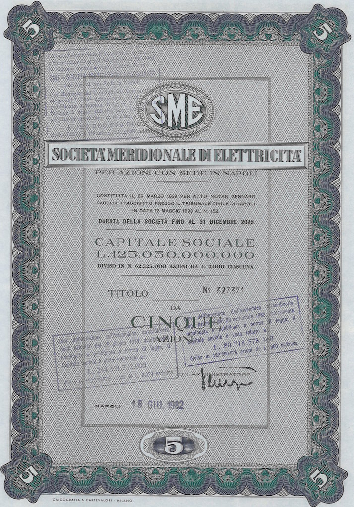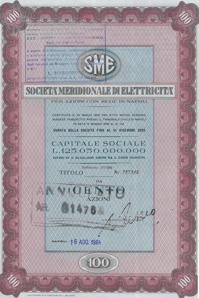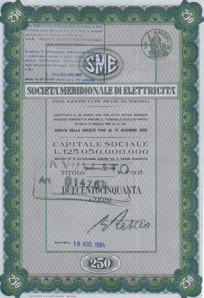 Successivamente, dopo la nazionalizzazione del settore dell'energia elettrica effettuata dal Governo Fanfani nel 1962, impiegò le risorse derivate dagli indennizzi ricevuti dallo Stato investendo nel settore agricolo ed alimentare. Il 30 maggio 1963 diventa Società Meridionale... Altro