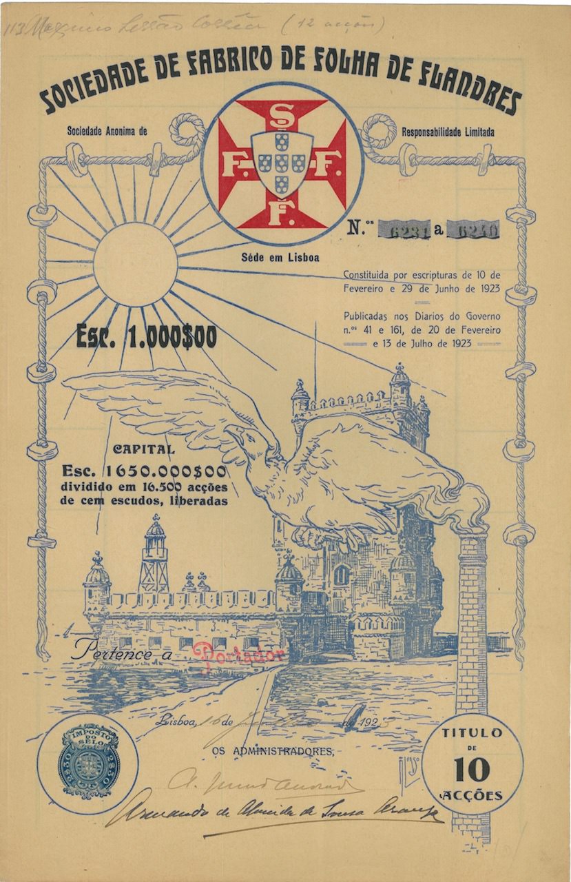 A-27866Soc. de Fabrico de Folha de Flandres-1N.D.Lisbona192310 azioniR2 (1001-5000 pezzi)S1 (da 0 a 25 €)