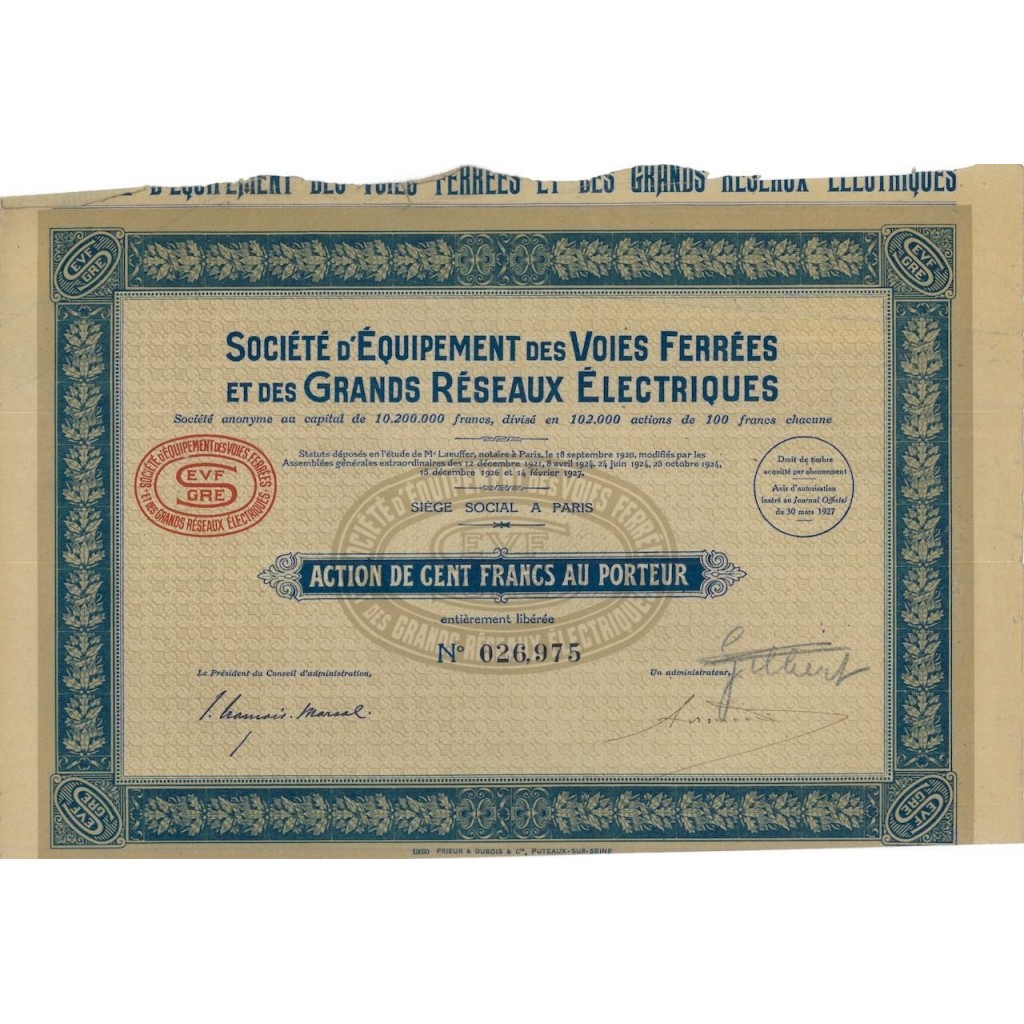 A-53140D’equipement des voices ferres soc.-1 Parigi1927 100 FranchiR1 (Più di 5000 pezzi)S1 (da 0 a 25 €)