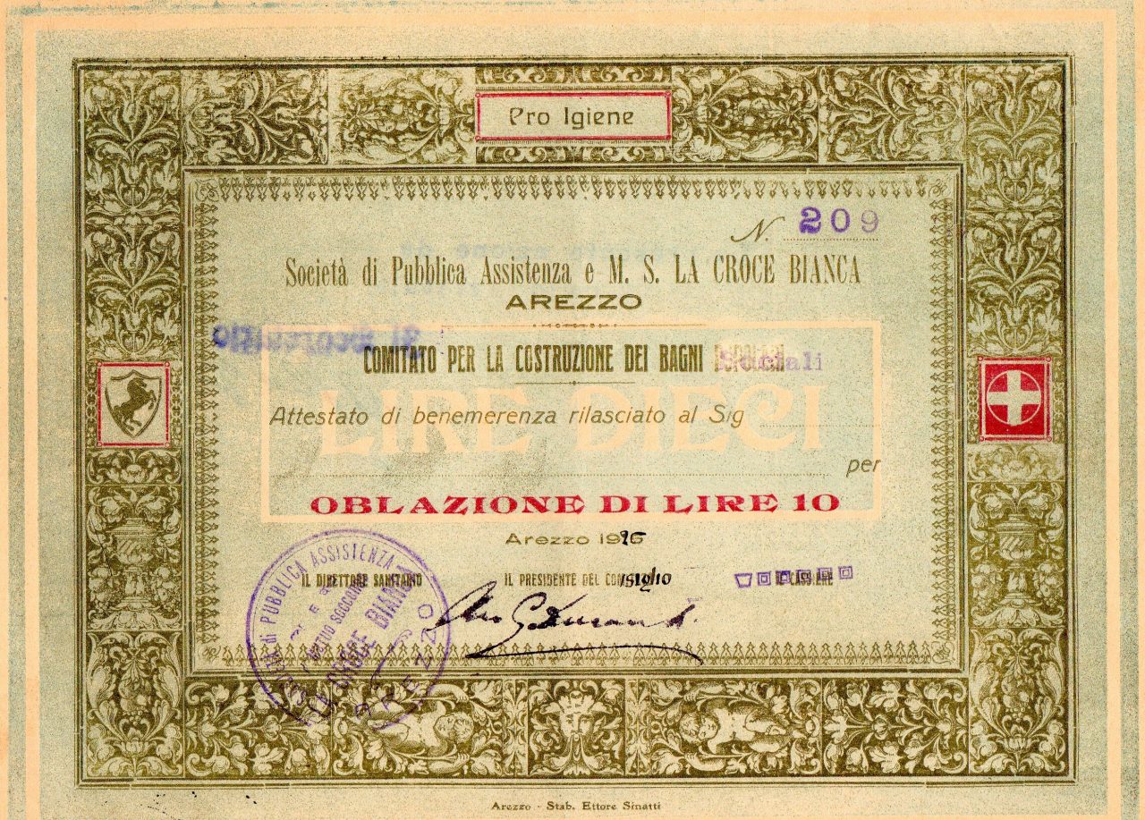 A-34290SOCIETA’ DI PUBBLICA ASSISTENZA E M.S. LA CROCE BIANCA-AREZZO-1Arezzo1926Oblazione di L.10--