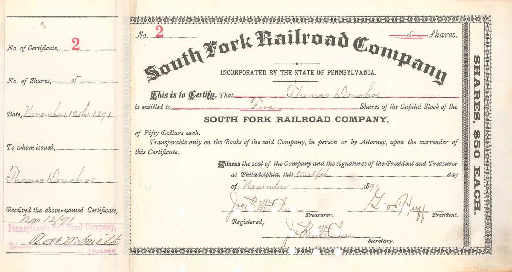 Fondata nel 1890 dalla Pennsylvania RR per gestire il treno merci per 8,1 miglia da South Fork a Coal Mines, Pennsylvania (aperto il 15 agosto 1891).